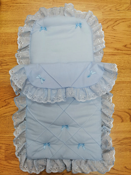 Baby Boys universal fit pram cosytoes footmuff pram set with bows colour blue
